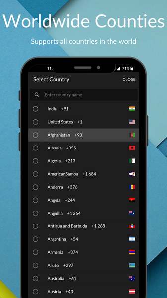 It supports all countries and the mobile number entering as well as copy-paste a mobile number from your clipboard.